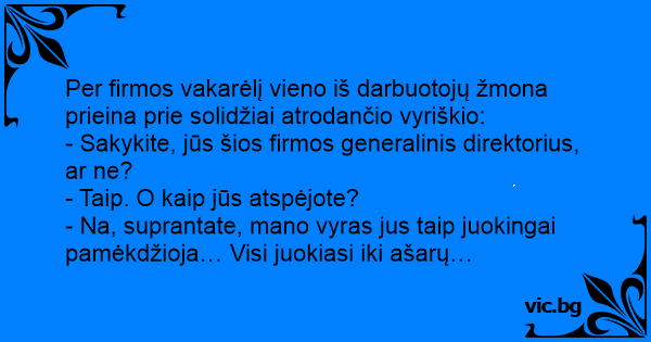 - Na, suprantate, mano vyras jus taip juokingai pamėkdžioja… Visi juokiasi iki ašarų…