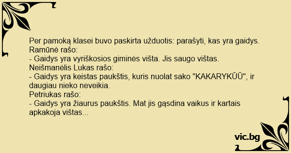 Per pamoką klasei buvo paskirta užduotis: parašyti, kas yra gaidys.