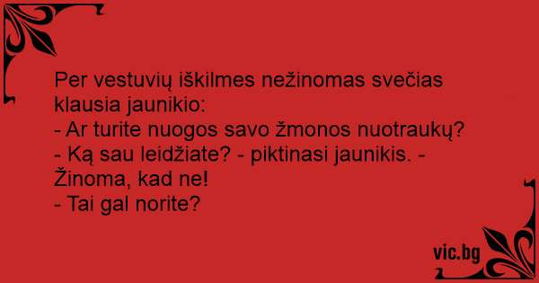 - Ką sau leidžiate? - piktinasi jaunikis. - Žinoma, kad ne!