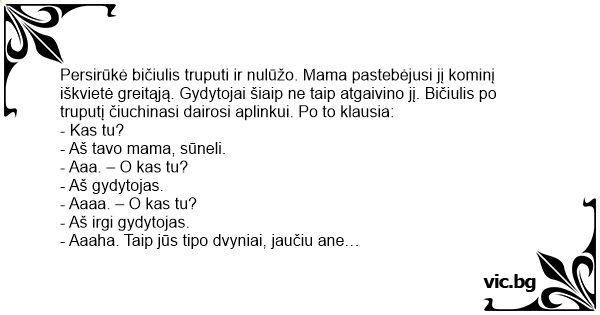 Persirūkė bičiulis truputi ir nulūžo. Mama pastebėjusi jį kominį iškvietė greitąją. Gydytojai šiaip ne taip atgaivino jį. Bičiulis po truputį čiuchinasi dairosi aplinkui. Po to klausia: