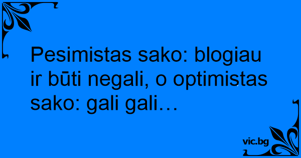 Pesimistas sako: blogiau ir būti negali, o optimistas sako: gali gali…