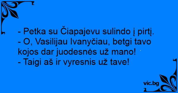 - O, Vasilijau Ivanyčiau, betgi tavo kojos dar juodesnės už mano!