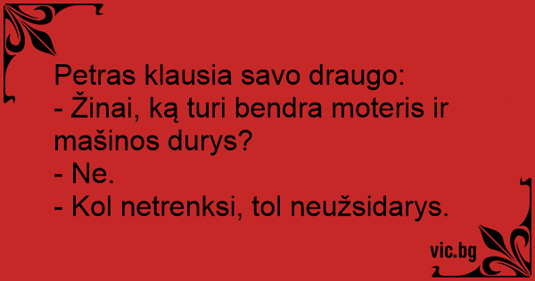 - Žinai, ką turi bendra moteris ir mašinos durys?
