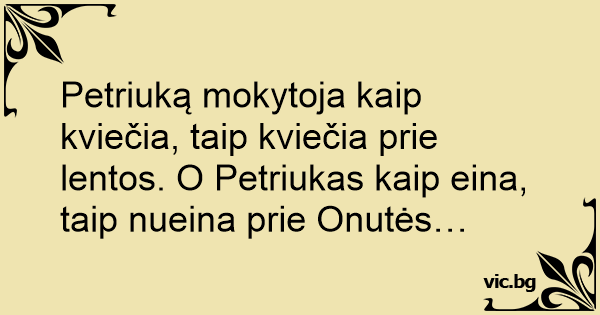 Petriuką mokytoja kaip kviečia, taip kviečia prie lentos. O Petriukas kaip eina, taip nueina prie Onutės…