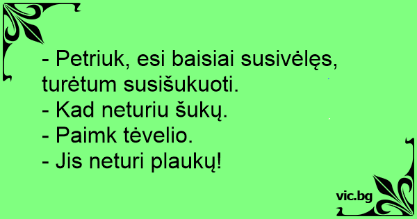- Petriuk, esi baisiai susivėlęs, turėtum susišukuoti.
