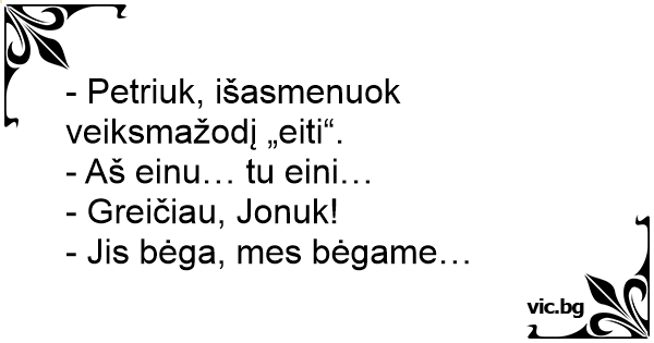 - Petriuk, išasmenuok veiksmažodį „eiti“.