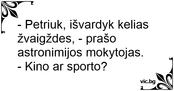 - Petriuk, išvardyk kelias žvaigždes, - prašo astronimijos mokytojas.