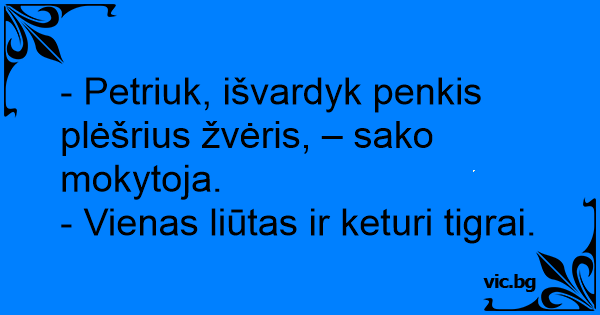 - Petriuk, išvardyk penkis plėšrius žvėris, – sako mokytoja.