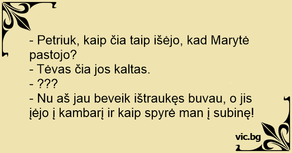 - Petriuk, kaip čia taip išėjo, kad Marytė pastojo?