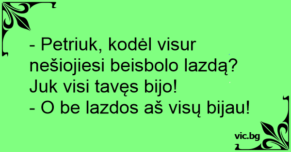 - Petriuk, kodėl visur nešiojiesi beisbolo lazdą? Juk visi tavęs bijo!