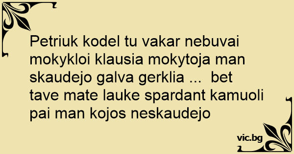 Petriuk kodel tu vakar nebuvai mokykloi klausia mokytoja man skaudejo galva gerklia ... bet tave mate lauke spardant kamuoli pai man kojos neskaudejo