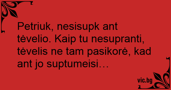Petriuk, nesisupk ant tėvelio. Kaip tu nesupranti, tėvelis ne tam pasikorė, kad ant jo suptumeisi…
