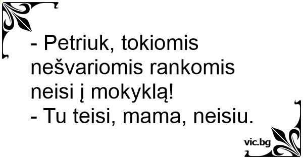 - Petriuk, tokiomis nešvariomis rankomis neisi į mokyklą!
