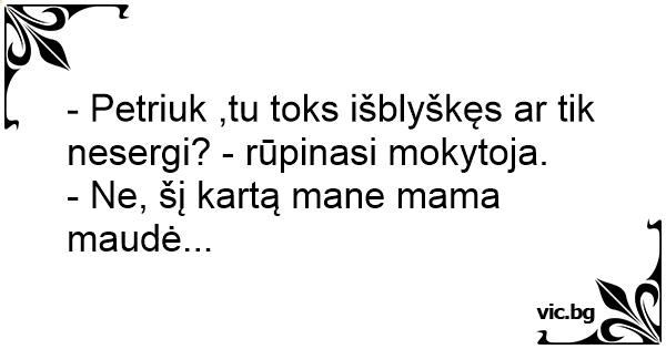 - Petriuk ,tu toks išblyškęs ar tik nesergi? - rūpinasi mokytoja.