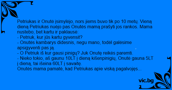 - O Petriuk iš kur gausi pinigų? Juk Onutę reikės paremti.