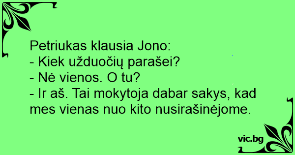 - Ir aš. Tai mokytoja dabar sakys, kad mes vienas nuo kito nusirašinėjome.