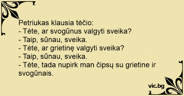 - Tėte, tada nupirk man čipsų su grietine ir svogūnais.