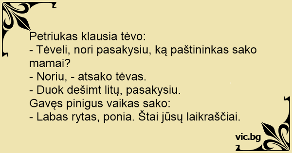 - Tėveli, nori pasakysiu, ką paštininkas sako mamai?