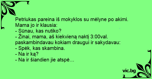 Petriukas pareina iš mokyklos su mėlyne po akimi. Mama jo ir klausia: