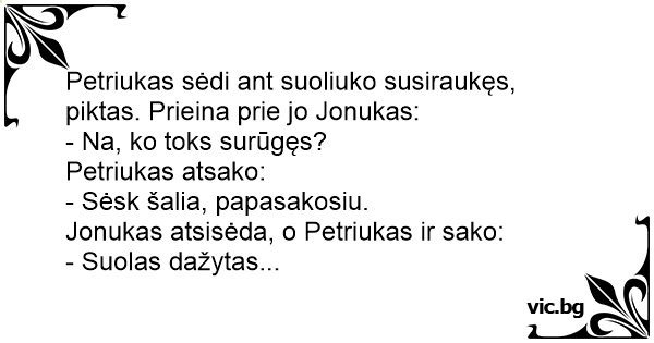 Jonukas atsisėda, o Petriukas ir sako: