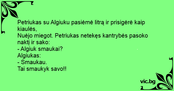 Nuėjo miegot. Petriukas netekęs kantrybės pasoko naktį ir sako: