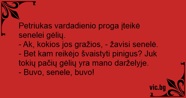 - Bet kam reikėjo švaistyti pinigus? Juk tokių pačių gėlių yra mano darželyje.