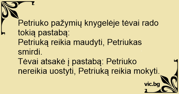 Tėvai atsakė į pastabą: Petriuko nereikia uostyti, Petriuką reikia mokyti.