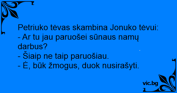 - Ar tu jau paruošei sūnaus namų darbus?