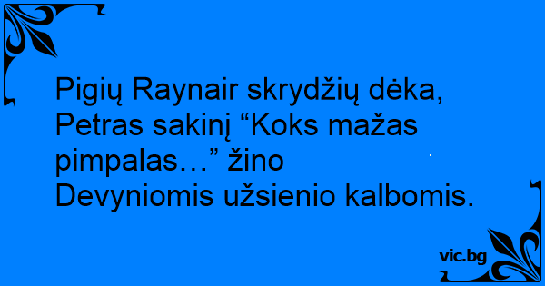 Pigių Raynair skrydžių dėka, Petras sakinį “Koks mažas pimpalas…” žino