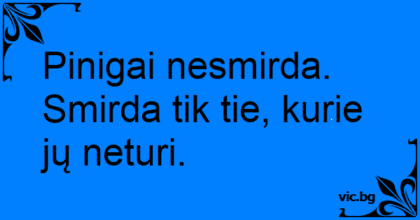 Pinigai nesmirda. Smirda tik tie, kurie jų neturi.