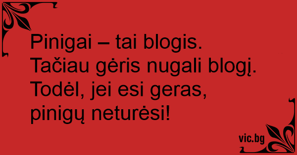 Pinigai – tai blogis. Tačiau gėris nugali blogį. Todėl, jei esi geras, pinigų neturėsi!