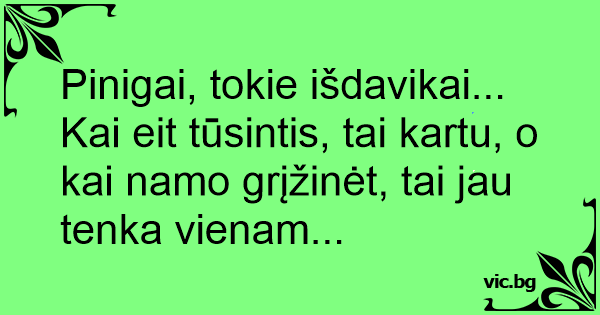 Pinigai, tokie išdavikai... Kai eit tūsintis, tai kartu, o kai namo grįžinėt, tai jau tenka vienam...