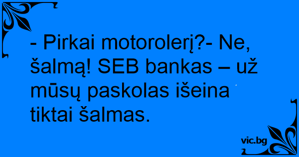 - Pirkai motorolerį?- Ne, šalmą! SEB bankas – už mūsų paskolas išeina tiktai šalmas.