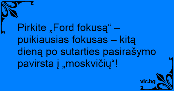 Pirkite „Ford fokusą“ – puikiausias fokusas – kitą dieną po sutarties pasirašymo pavirsta į „moskvičių“!