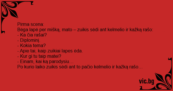 Bėga lapė per mišką, mato – zuikis sėdi ant kelmelio ir kažką rašo: