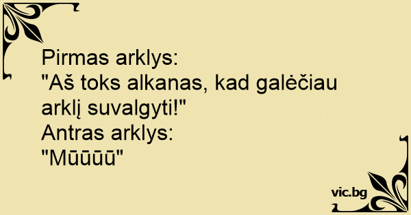 Pirmas arklys: "Aš toks...