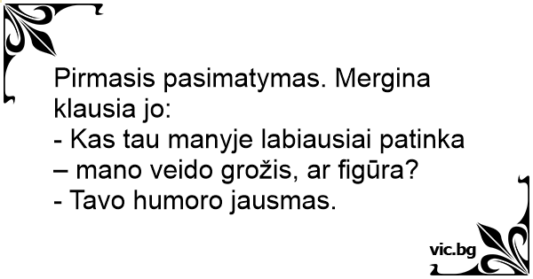- Kas tau manyje labiausiai patinka – mano veido grožis, ar figūra?