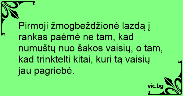 Pirmoji žmogbeždžionė lazdą į rankas paėmė ne tam, kad numuštų nuo šakos vaisių, o tam, kad trinktelti kitai, kuri tą vaisių jau pagriebė.