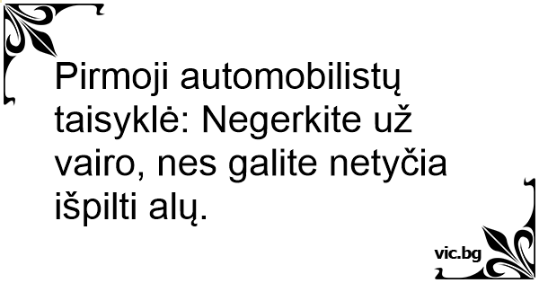 Pirmoji automobilistų taisyklė: Negerkite už vairo, nes galite netyčia išpilti alų.