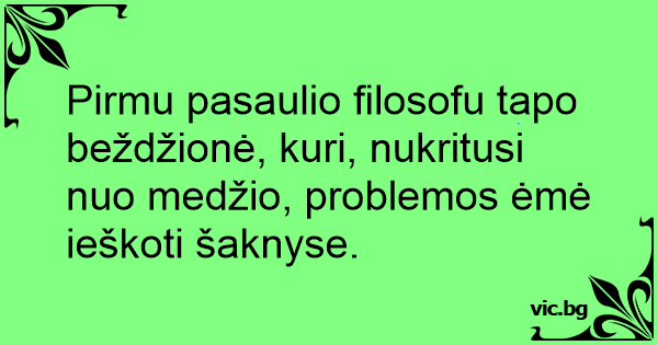 Pirmu pasaulio filosofu tapo beždžionė, kuri, nukritusi nuo medžio, problemos ėmė ieškoti šaknyse.