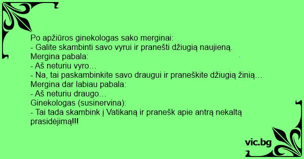 - Tai tada skambink į Vatikaną ir pranešk apie antrą nekaltą prasidėjimą!!!