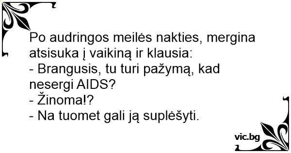 - Brangusis, tu turi pažymą, kad nesergi AIDS?