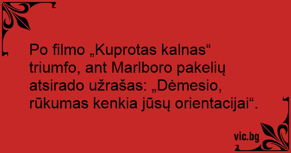Po filmo „Kuprotas kalnas“ triumfo, ant Marlboro pakelių atsirado užrašas: „Dėmesio, rūkumas kenkia jūsų orientacijai“.