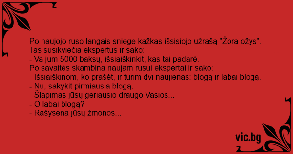 Po savaitės skambina naujam rusui ekspertai ir sako: