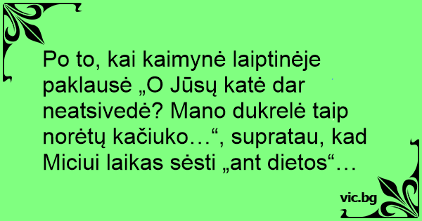 Po to, kai kaimynė laiptinėje paklausė „O Jūsų katė dar neatsivedė? Mano dukrelė taip norėtų kačiuko…“, supratau, kad Miciui laikas sėsti „ant dietos“…
