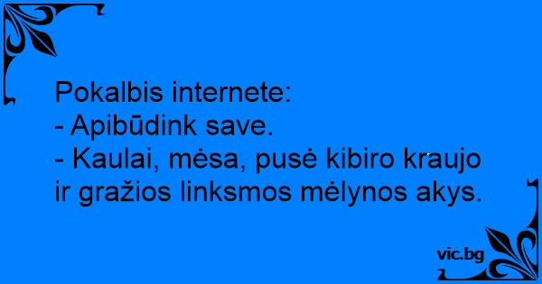 - Kaulai, mėsa, pusė kibiro kraujo ir gražios linksmos mėlynos akys.