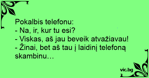 - Žinai, bet aš tau į laidinį telefoną skambinu…