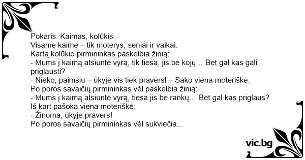 - Nieko, paimsiu – ūkyje vis tiek pravers! – Sako viena moteriškė.