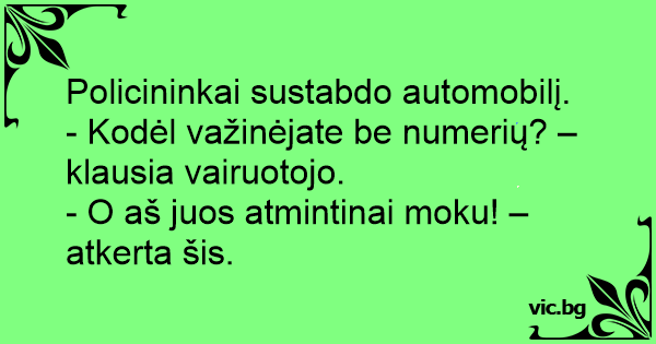 - Kodėl važinėjate be numerių? – klausia vairuotojo.