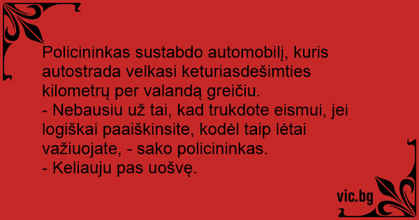 - Nebausiu už tai, kad trukdote eismui, jei logiškai paaiškinsite, kodėl taip lėtai važiuojate, - sako policininkas.